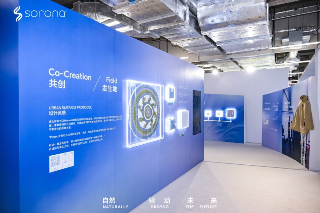当我们如同脱离地球、身处宇宙般,穿过洁白的云层将视线投射向地球,幽静流动的蓝与沁人心脾的绿意点缀,显得尤为动人。从「材料进化中心」关于材料从分子结构到纤维系统的技术逻辑呈现,到「材料进入生活」版块关于城市律动、户外适应、动态表现、羊毛系列的多元场景适应性的表达,再到「共创发生地」与设计品牌RAXXY的联合系列“URBAN SURFACE PROTOCOL”亮相,以及「循环行动」篇章SORONA®品牌在上海MODE展、ANTAZERO零售空间以及上海兴业太古汇的可持续践行……SORONA®品牌以此向每一位来访的设计力量阐述SORONA®生物基材料核心成分源于自然、结构性能适应自然、以行动守护自然的价值主张与不懈践行,也向他们剖白了未来道路上,SORONA®生物基材料可以带给他们的性能升级、可持续赋能、与灵感加持。在这里,SORONA®品牌不再被视为单一功能元素,而是一种能够连接设计、产业与可持续实践的结构平台。