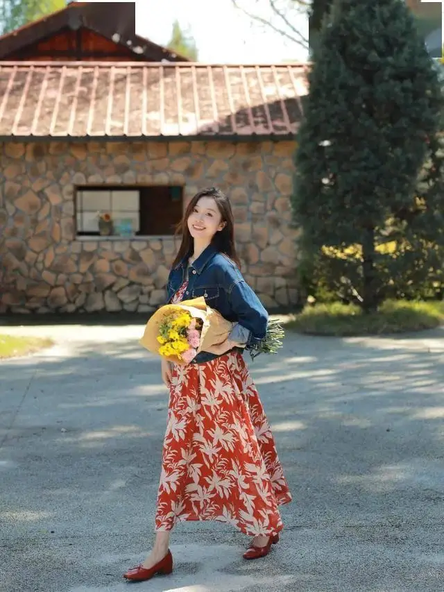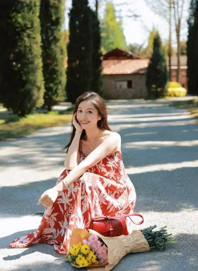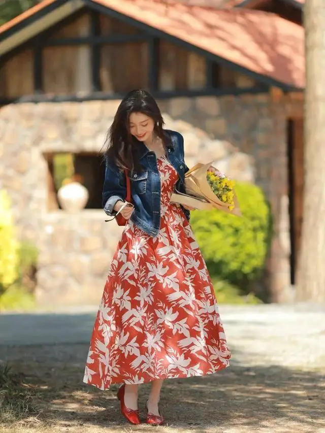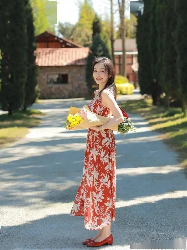 这条红底碎花裙真的是“百穿不厌”的范本!浓郁的红色衬得气色超好看,白色花叶图案又不会显杂乱,吊带版型+大裙摆自带松弛的氛围感,配同色系红鞋红包,热烈又清爽,鲜活又亮眼,确实是越穿越爱的好看~