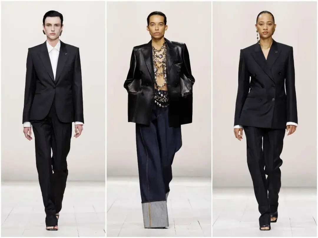 西装是纪梵希永恒的经典,本季的西装设计完成了一次温柔的解构。细条纹西装、马海毛夹克被刻意柔化,不再是咄咄逼人的强势,而是松弛随性的优雅;翻领随性垂搭、腰线自然下移,搭配轻薄内搭,打破正装与休闲的边界,让职场女性既能保持专业姿态,又能拥有舒适自在的穿着体验。