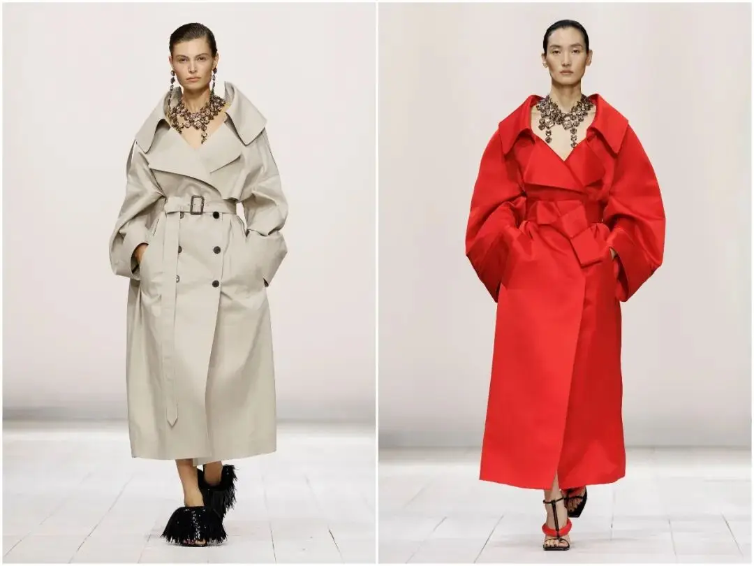 斗篷廓形回归纪梵希的经典基因,本季被赋予全新生命力。白色蕾丝斗篷、红色缎面茧型斗篷,线条流畅垂坠,没有夸张的体积感,反而轻盈贴身。披上斗篷的瞬间,女性自带优雅气场,既像守护自己的战士,又像被温柔包裹的缪斯,完美诠释“刚柔并济”的核心。
