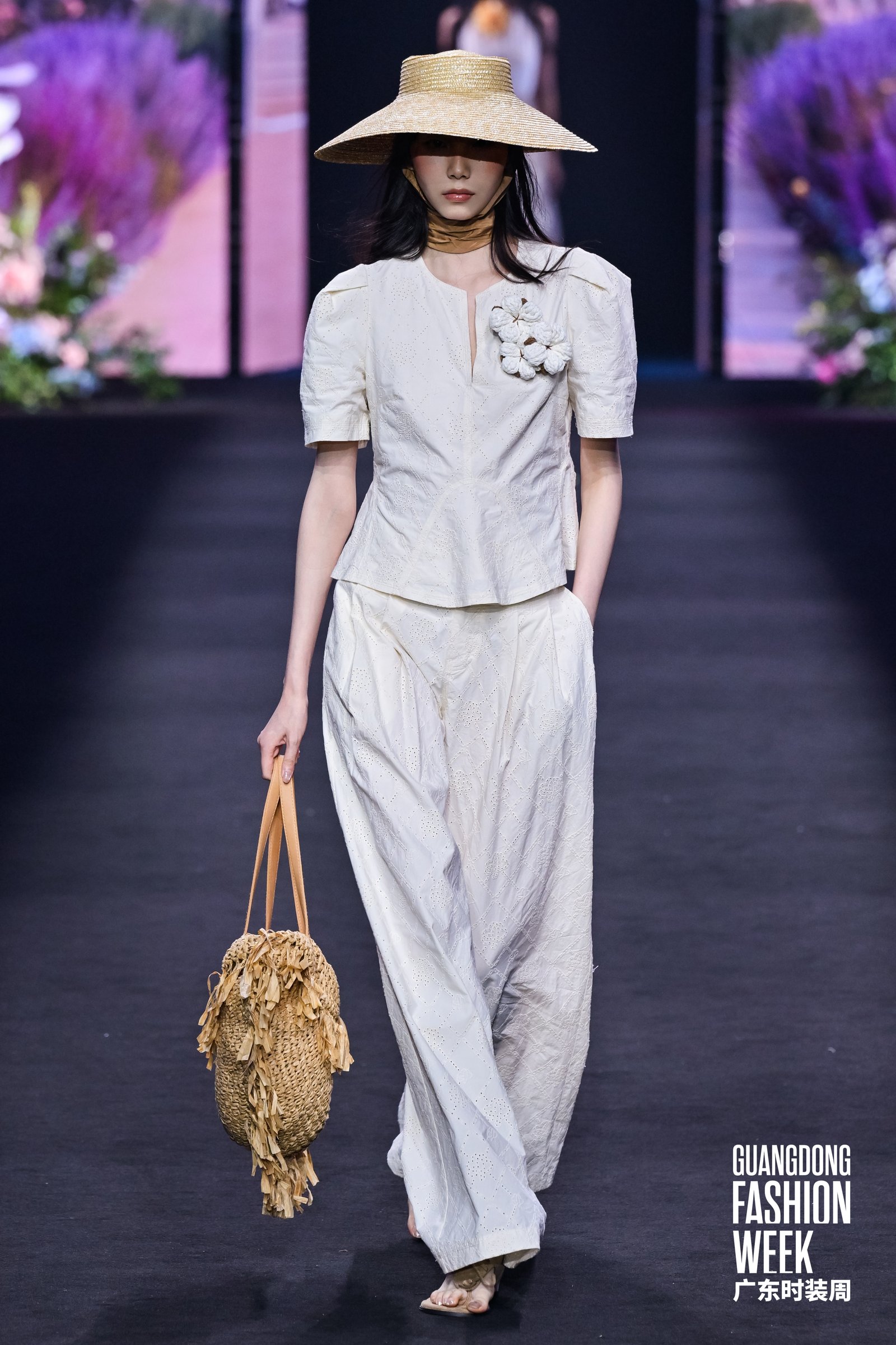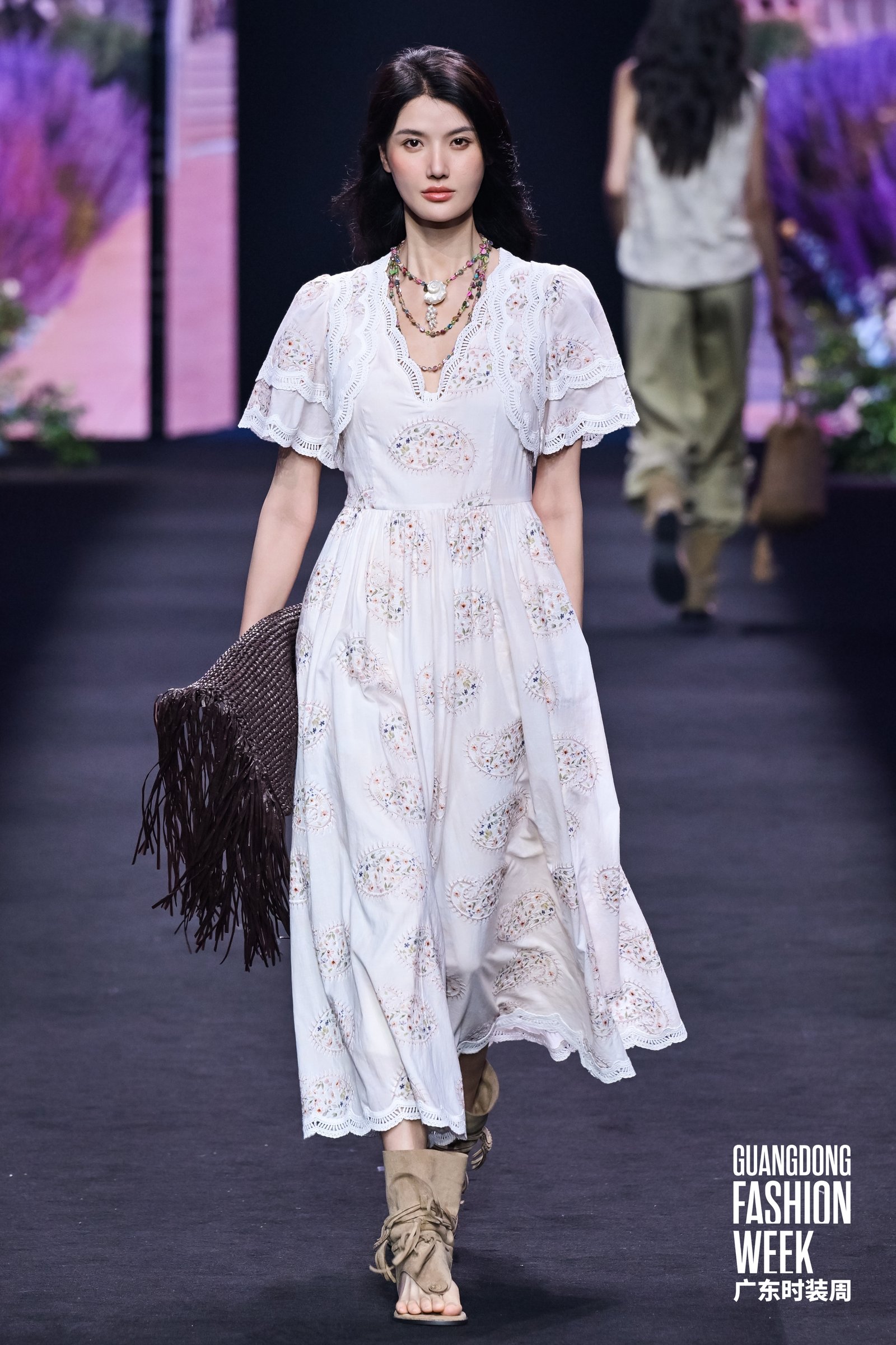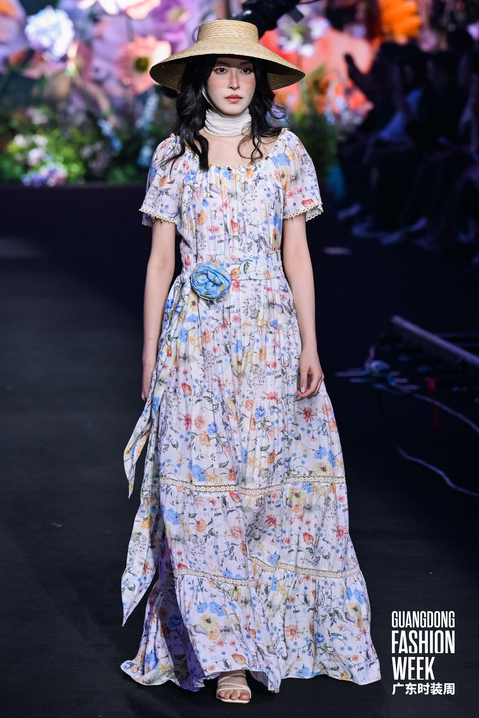 4月17日,2026广东时装周-春季开幕式在广州市番禺万博时尚广场盛大启幕。国民棉麻女装品牌茵曼以“一路生花”为主题,带来全国首场棉麻美学AI大秀,并在大秀现场正式官宣影视明星李兰迪担任茵曼品牌花漾代言人。