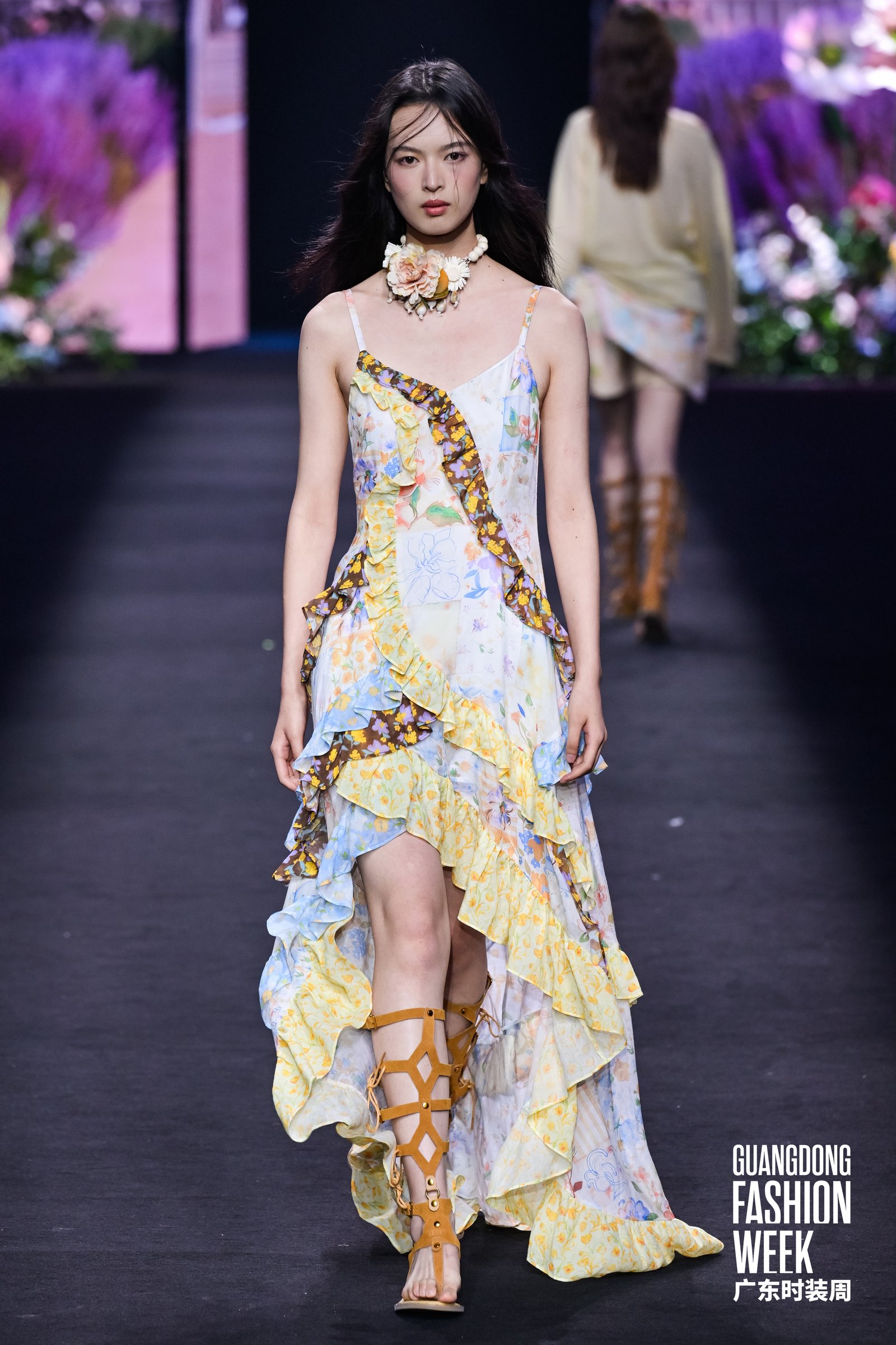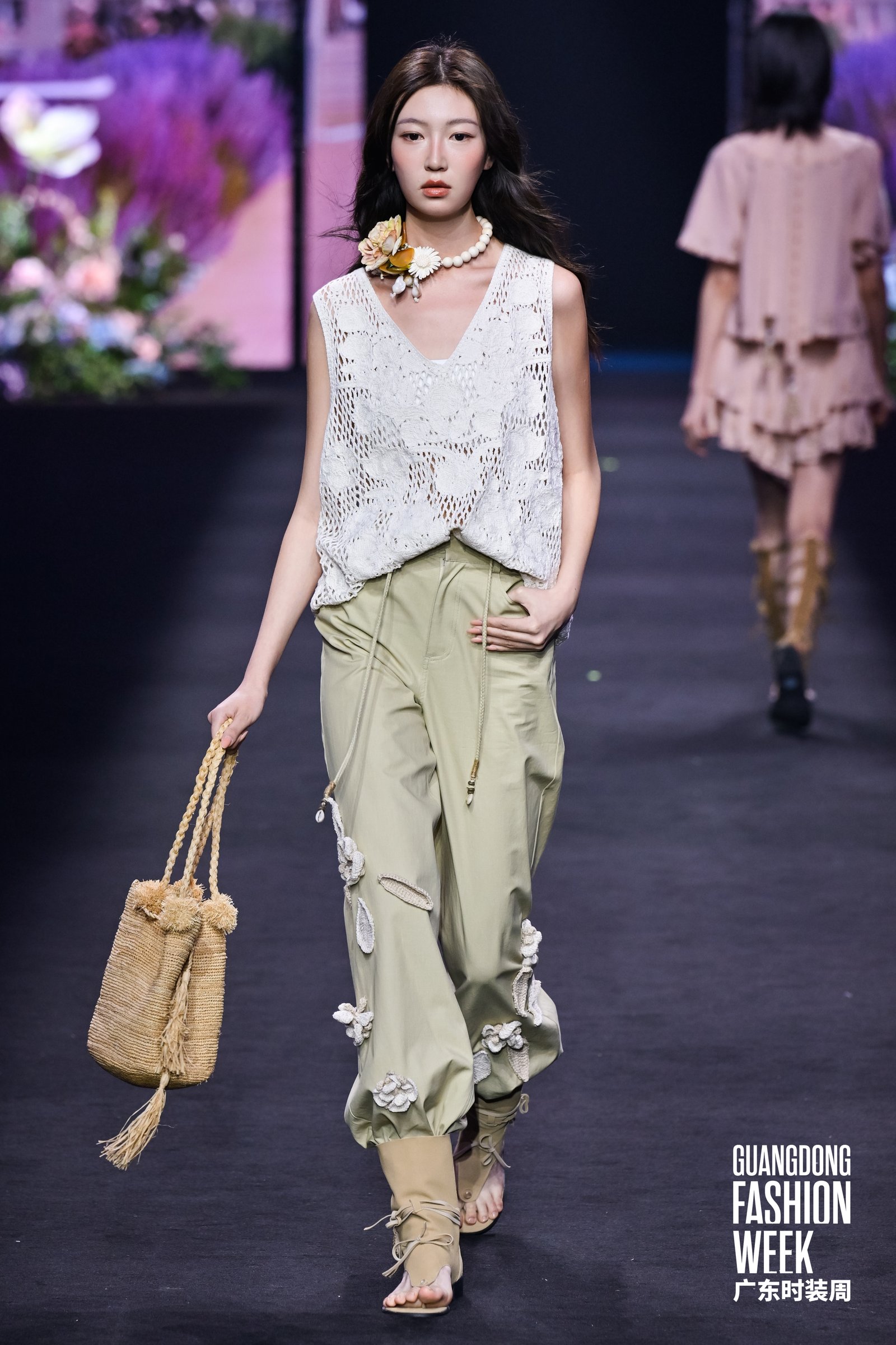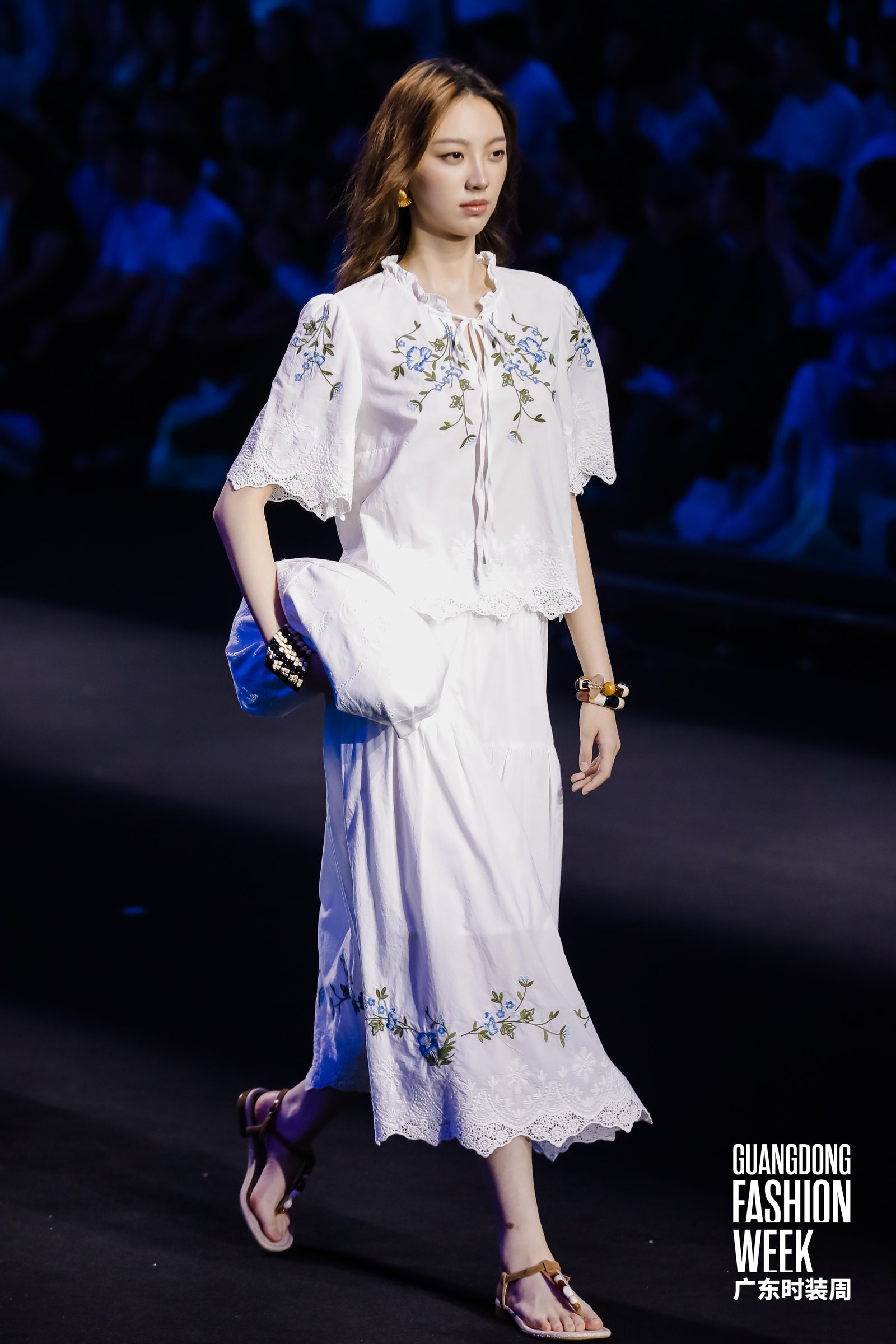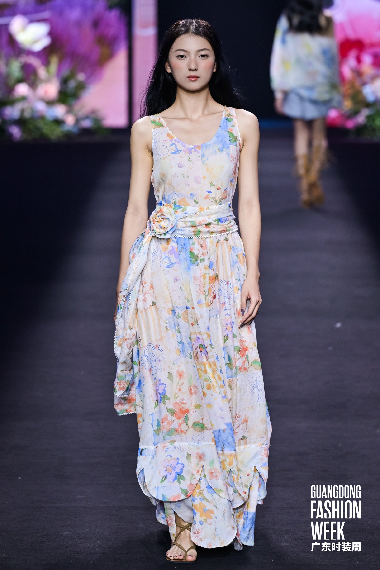 4月17日,2026广东时装周-春季开幕式在广州市番禺万博时尚广场盛大启幕。国民棉麻女装品牌茵曼以“一路生花”为主题,带来全国首场棉麻美学AI大秀,并在大秀现场正式官宣影视明星李兰迪担任茵曼品牌花漾代言人。