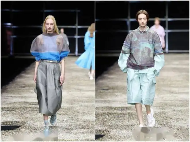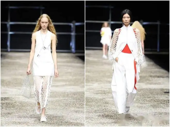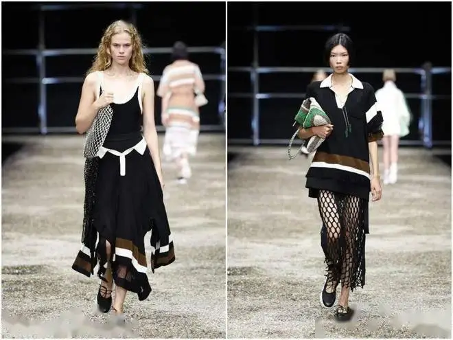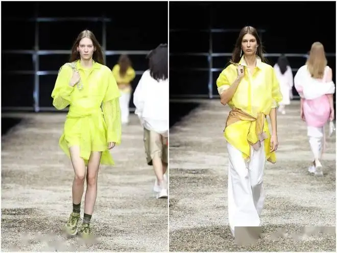 面料的选择与创新,是本季“脆弱与坚韧”主题最直观的表达。Anteprima始终坚持的可持续理念,在这一季得到了更充分的体现:再生尼龙、再生涤纶与可生物降解混纺面料成为主角,再生线、金属纱线与半透明材质交织,既有着如蝉翼般的轻薄通透,又藏着不易察觉的坚韧骨架。薄纱之下,身体的轮廓若隐若现,却没有丝毫冒犯感,只留下恰到好处的温柔与松弛。