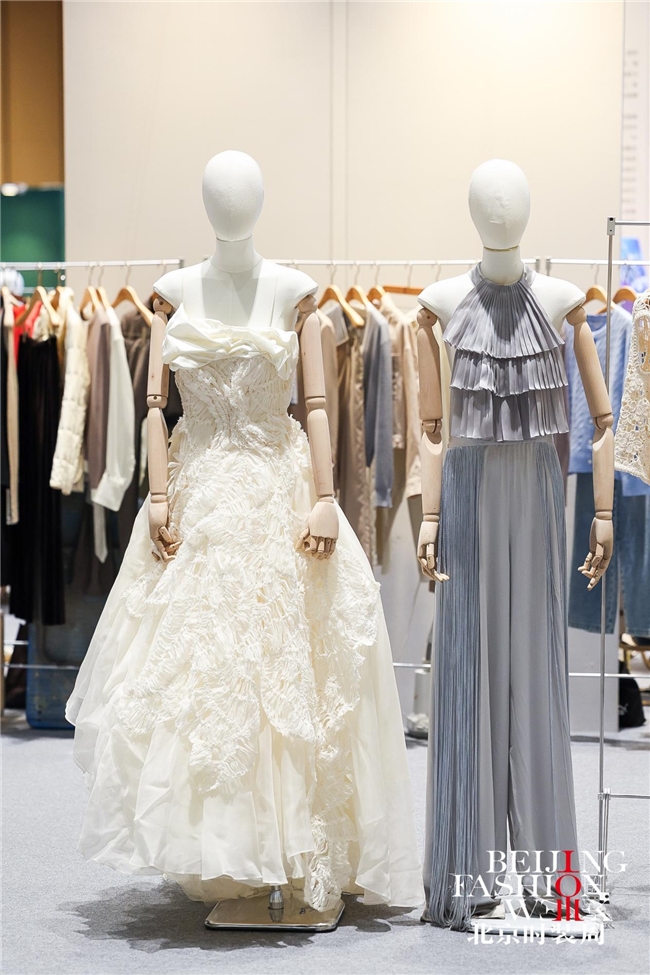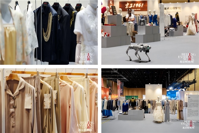 A展区聚焦北京本土服装服饰品牌与院校力量,北京时尚控股集团旗下服装服饰品牌、北京工美予寻YUXUN、北京市工艺美术技师学院、北京市新媒体技师学院等联袂呈现“燕京八绝”与现代设计的融合创新。