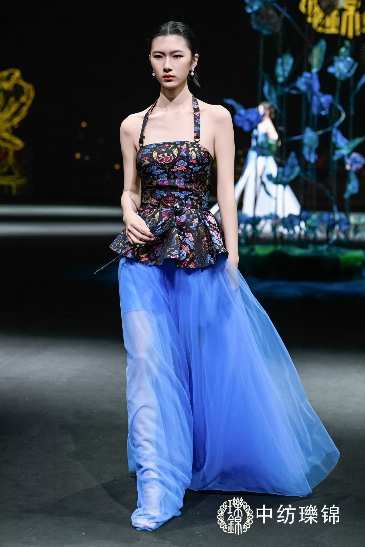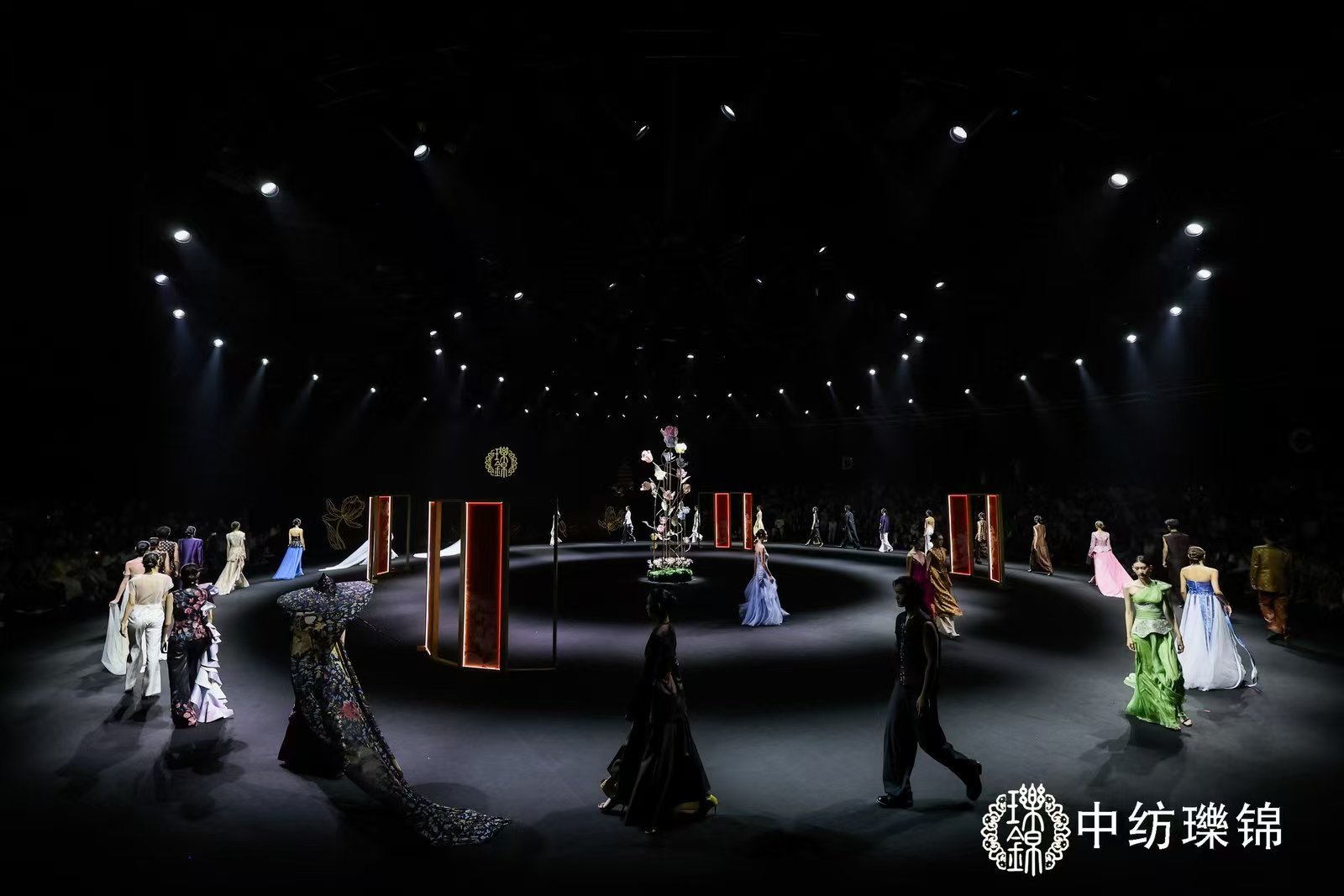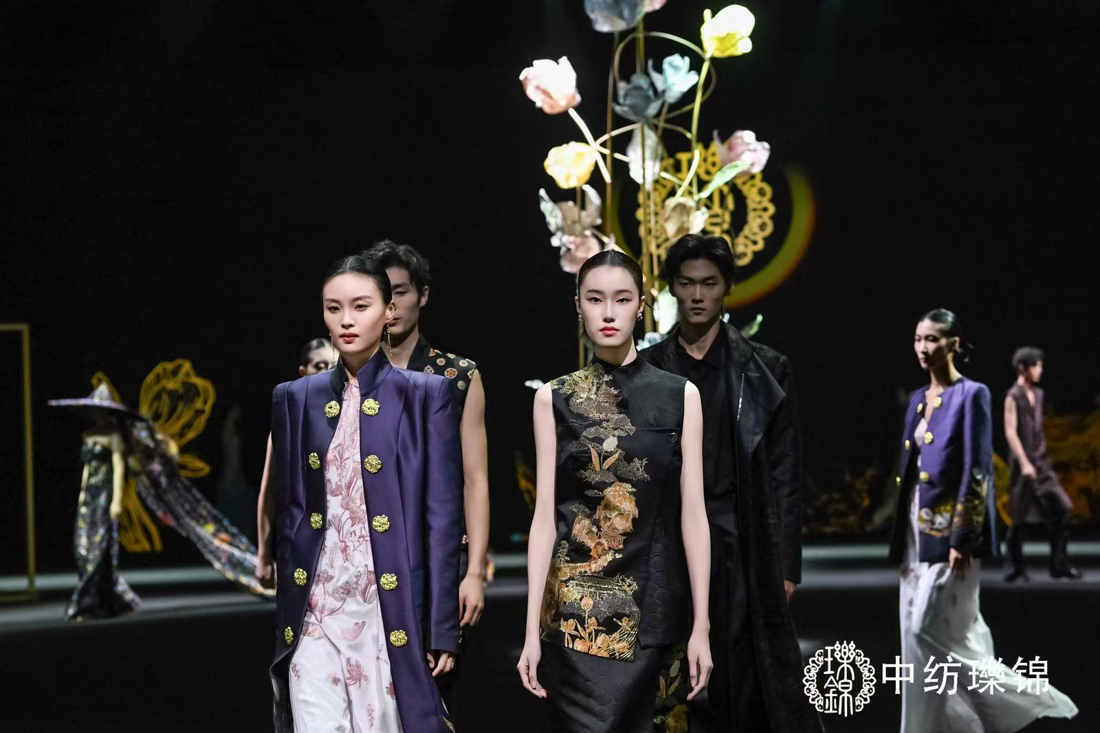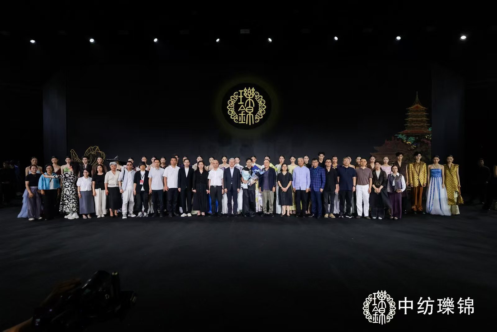 “郁”见瓅锦大秀的成功,离不开海宁许村这片“纺织沃土”的滋养。这座拥有40余年纺织积淀的重镇,已形成“家纺+服装+数字”联动的产业集群:1.5万余家纺织企业提供从面料研发到生产的全链条支持,20余万从业人员构建起完善的人才网络,全国30%的新中式面料产自这里——“好面料、许村造”的区域品牌,为中纺瓅锦的非遗创新提供了坚实支撑。