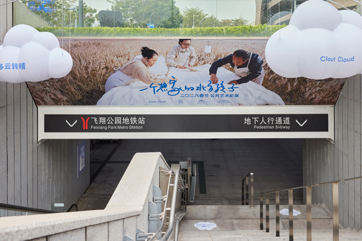 2026年1月20日—2月28日,Clout Cloud将在广州市白云区飞翔公园地铁站B口通道长廊,联合无限极广场共同发布一场在地铁里的公共艺术影像展。