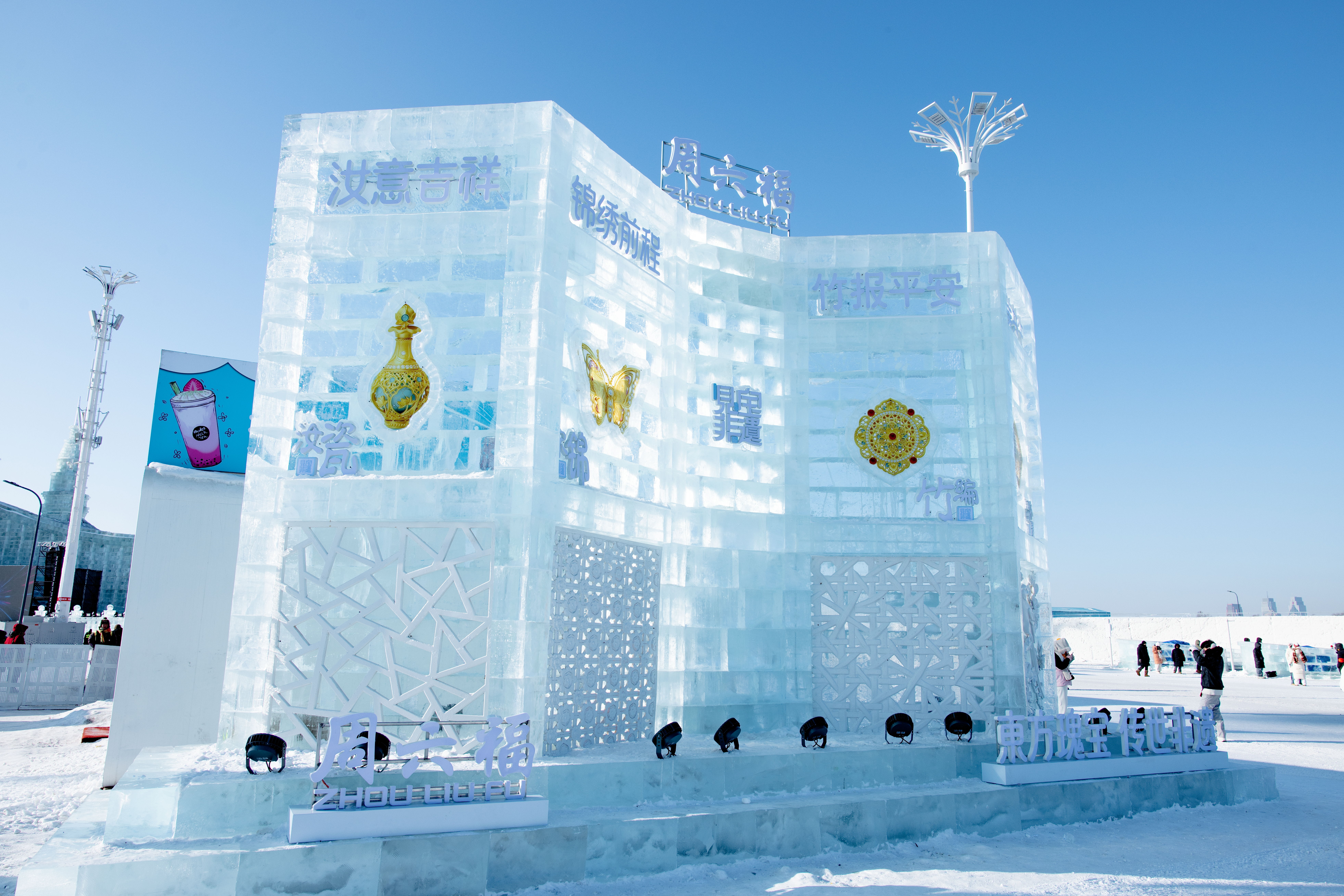 此外,为增强体验感,周六福深度融合了哈尔滨冰雪文化,于冰雪大世界设立周六福主题冰雕展位,为公众提供了可互动、可打卡的线下体验空间。