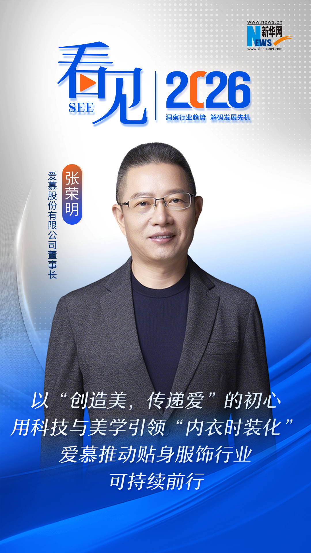 为何爱慕会在此时进行品牌焕新?这一动作背后有着怎样的思考?对此,新华网《看见2026》系列访谈特邀爱慕股份有限公司董事长张荣明,解读一件内衣如何从“好穿”进化到“能表达”,爱慕如何在行业变革的关键阶段,向世界交出一份“中国答卷”。