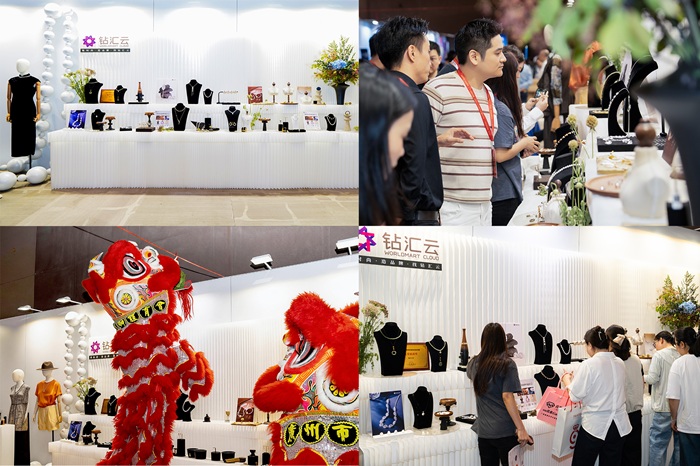 展会盛启,钻汇云展台闪耀全场。独立设计师品牌、时尚铜饰品、淡水珍珠、培育钻、新中式和田玉……众多新品悉数亮相,完美演示“一键选品、动态组货、柔性定制”的全流程数字供应链能力。热闹的舞狮表演更是将气氛推向高潮——雄狮腾跃、采青纳福,寓意行业兴旺、合作共赢,吸引了大批买手、品牌方与跨境卖家驻足洽谈。