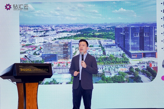 在主题宣讲环节,钻汇云总经理陈政洲作《数智赋能·生态共生》主题分享。钻汇云数字供应链平台聚焦珠宝饰品、服装服饰、潮玩文创三大垂直领域,以“Six Power”价值体系为核心,整合检测认证、智能云仓、全球物流、内容摄影基地、直播间等全链路资源,为合作伙伴提供商品品牌系列开发、动态产品矩阵构建、柔性供应链解决方案及全渠道选品等一站式服务。