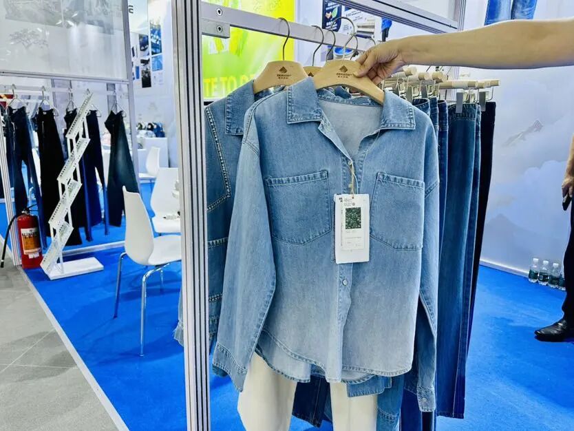 同为参展企业的名杰纺织,此次首次携牛仔文创系列亮相,实现专业面料功底与原创文创设计的深度融合。企业以大数据打造智能化制造工厂,不止于深耕传统牛仔面料领域,更从优质面料供应向文化创意、时尚设计延伸,将牛仔材质、工艺美学与文化创意融入产品表达,彰显从“面料制造商”向“时尚文化创造者”的品牌升级。佳运纺织则带来机器人穿着展示、AI模特、AI云裳等新技术应用,现场直观呈现面料到成衣的转化效果,叠加抖音、淘宝等电商直播“即买即秀”,加速成果转化。