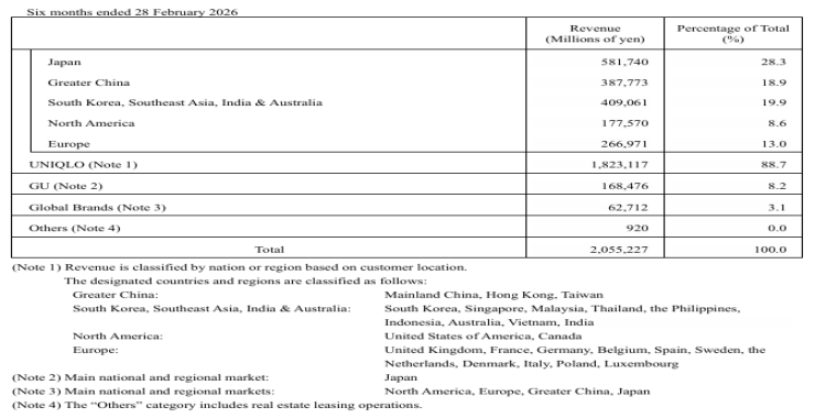 近日,优衣库(UNIQLO)母公司迅销集团公布截至2026年2月28日的2026财年中报。期内,集团总营收同比增长14.8%至2.06万亿日元(约合人民币0.088万亿元),营业利润同比增长28.3%至3869亿日元(约合人民币165.99亿元),创历史新高。